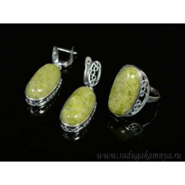 Кольцо и серьги яшма уральская " Грация "..
