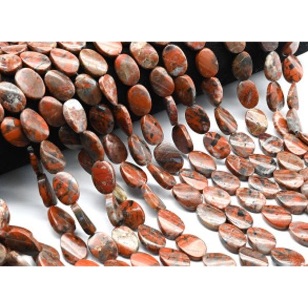 Бусины из яшмы красной овал витой 11*16мм, 40см, 25 бусин