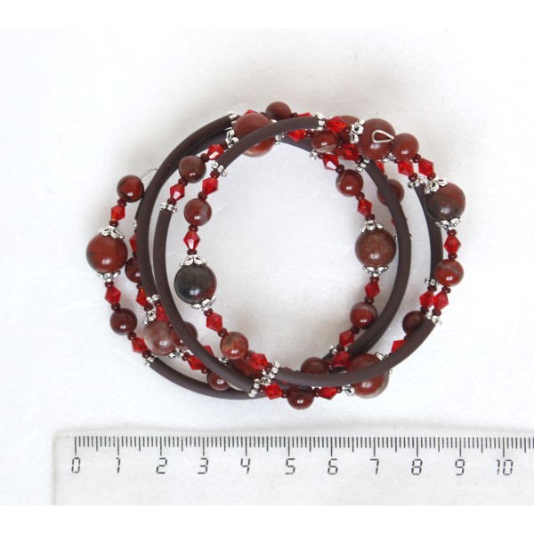 Браслет из яшмы красной, 5 оборотов, шарики 10мм и 6мм с трубочками