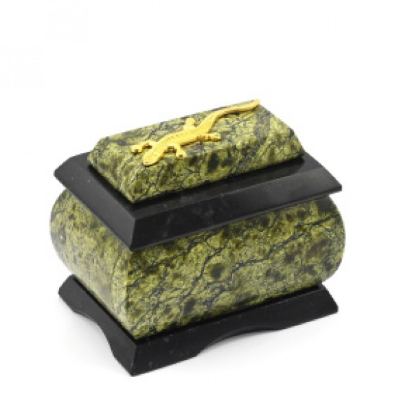 • Шкатулка из змеевика комбинированная с ящеркой, 75*55*65мм