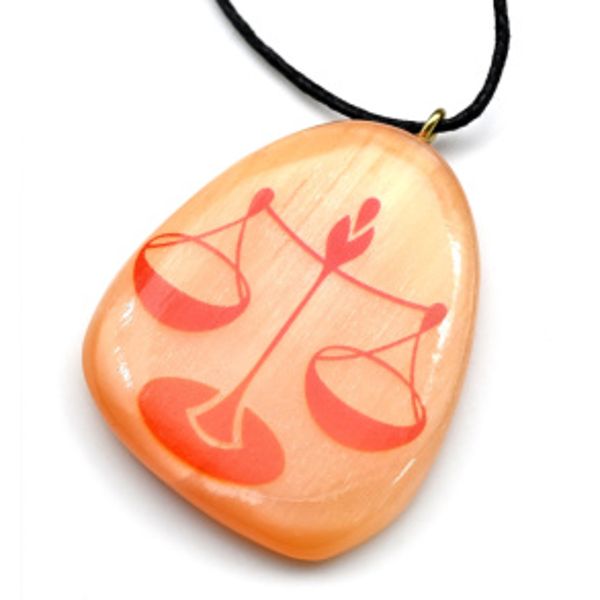 Кулон из селенита знак зодиака "Весы" 37*44мм, на шнурке