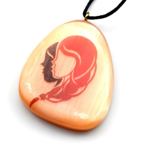 Кулон из селенита знак зодиака "Близнецы" 37*44мм, на шнурке
