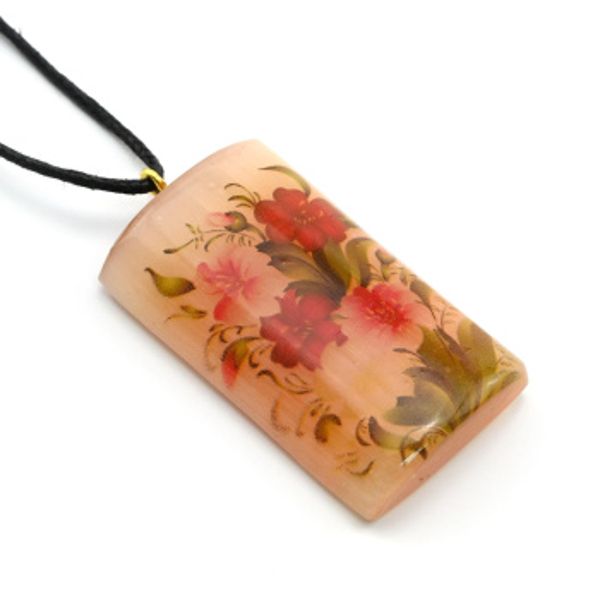 Кулон из селенита "Цветы №17" прямоугольный 25*42мм, на шнурке