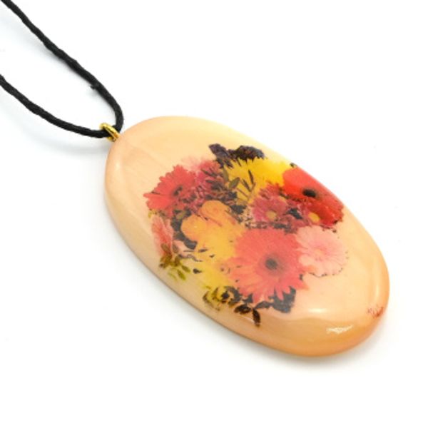 • Кулон из селенита "Цветы №14" овал 28*50мм, на шнурке