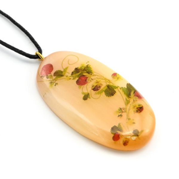 Кулон из селенита "Земляничка" овал 28*50мм, на шнурке