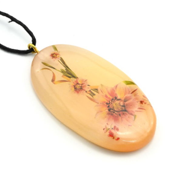 • Кулон из селенита "Цветы 4" овал 28*50мм, на шнурке