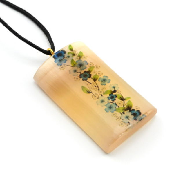 Кулон из селенита "Цветы №15" прямоугольный 25*42мм, на шнурке