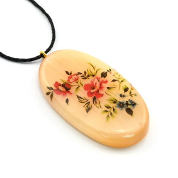 • Кулон из селенита "Цветы №11" овал 28*50мм, на шнурке