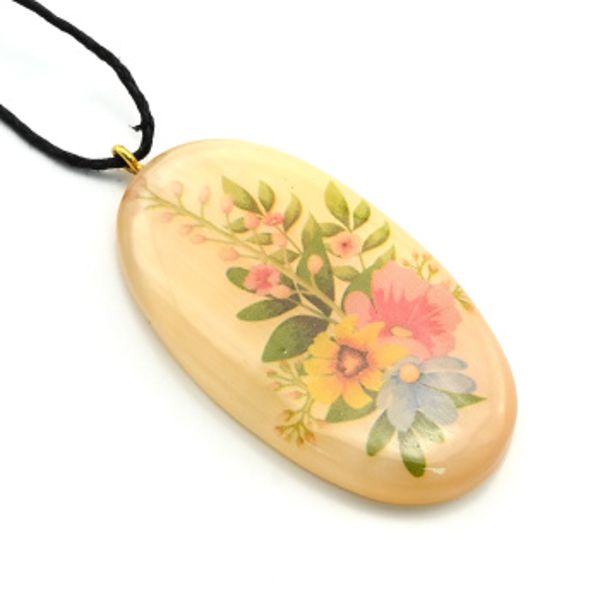 • Кулон из селенита "Цветы №19" овал 28*50мм, на шнурке