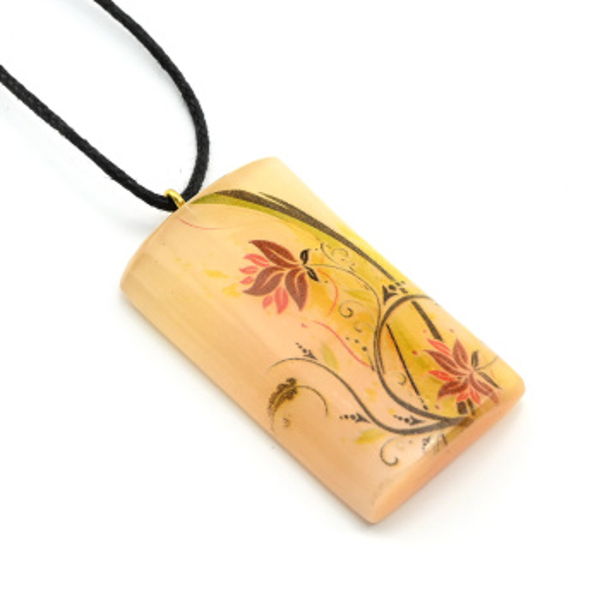 Кулон из селенита "Цветы №14" прямоугольный 25*42мм, на шнурке
