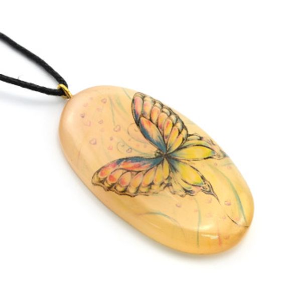 • Кулон из селенита "Бабочка 3" овал 28*50мм, на шнурке