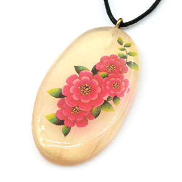 Кулон из селенита "Цветы №10" овал 27*50мм, на шнурке