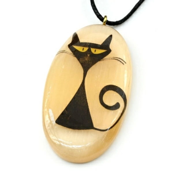• Кулон на шнурке из селенита Киска овал 27*50мм