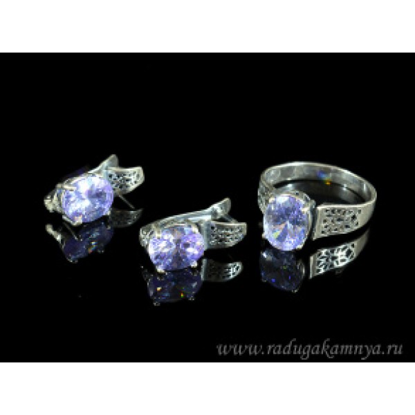 Кольцо и серьги с цирконом искусственным, цвет лаванда (иск.)
