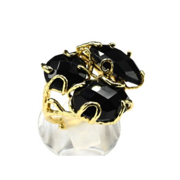Кольцо с агатом черным (имитация) из ювелирного сплава (иск.)