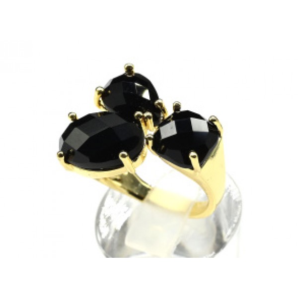 Кольцо с агатом черным (имитиция) из ювелирного сплава (иск.)