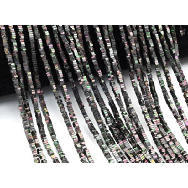 Бусины из гематита квадратик 2*1мм цв.черный хамелеон, 38,5см, 384 бусины
