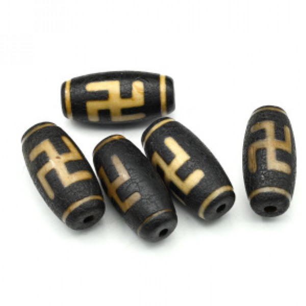 Бусины Дзи "ХоТу" из агата бочонок 15*30мм, цвет черный, 1 бусина.