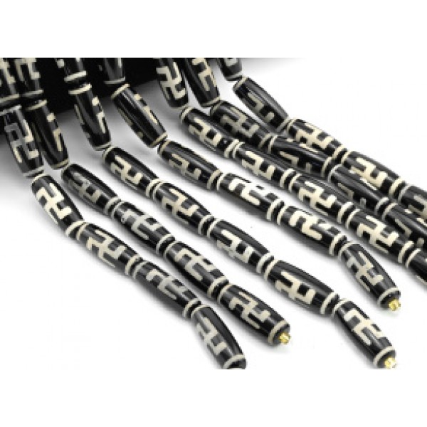 Бусины Дзи "ХоТу" из агата бочонок 10*30мм цв.черно-белый, 29см, 10 бусин