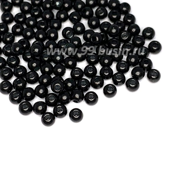 Бусины пластик 3 мм, цвет черный глянец, 18 гр/упаковка