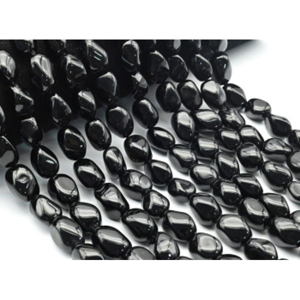 • Бусины из агата черного овал витой 10*16мм, 38см, 23 бусины