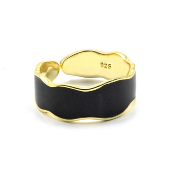 Кольцо модное с эмалью черной, золотистое (иск.)