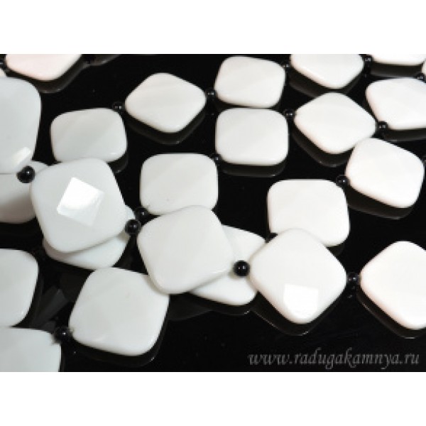 Бусины из агата белого (иск.) ромб гр.35*35мм, 40см, 10 бусин