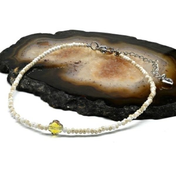 Браслет на ногу из циркона шарик гр.2мм, цвет белый, 21см (иск.)