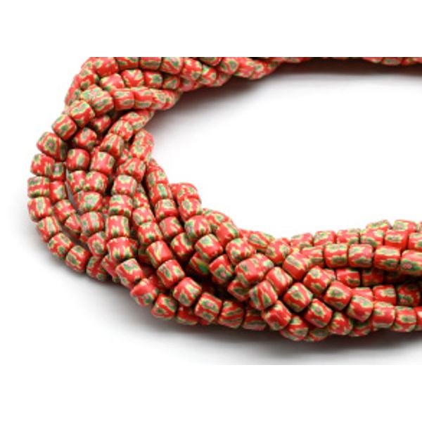 Бусины из каучука цилиндр 6*6мм с принтом, цвет красный, 40см, 63 бусины