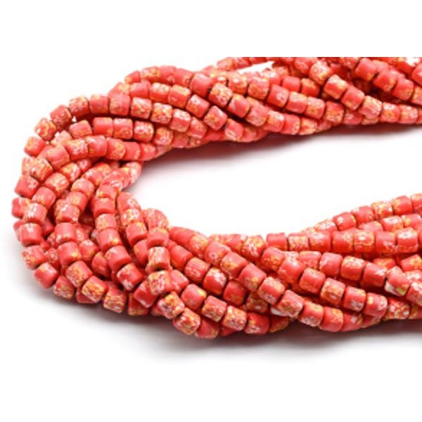 Бусины из каучука цилиндр 6*6мм с принтом, цвет красный, 40см, 63 бусины