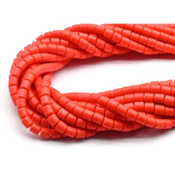 Бусины из каучука цилиндр 6*6мм, цвет красный, 40см, 63 бусины (иск.)