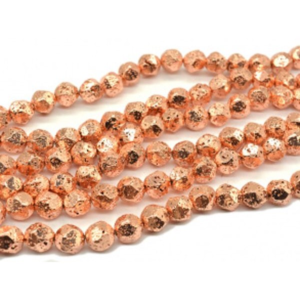 Бусины из лавы шарик с гранями 12мм цвет розовое золото, 38см, 31 бусина