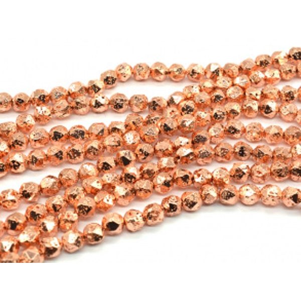 Бусины из лавы шарик с гранями 8мм цвет розовое золото, 38см, 46 бусин