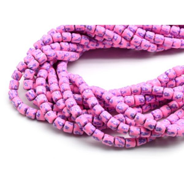 Бусины из каучука цилиндр 6*6мм с принтом, цвет розовый, 40см, 63 бусины