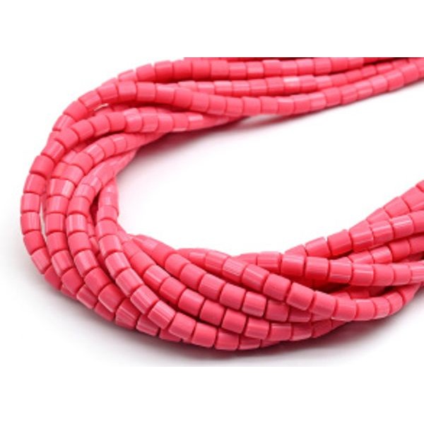 Бусины из каучука цилиндр 6*6мм, цвет розовый, 40см, 63 бусины