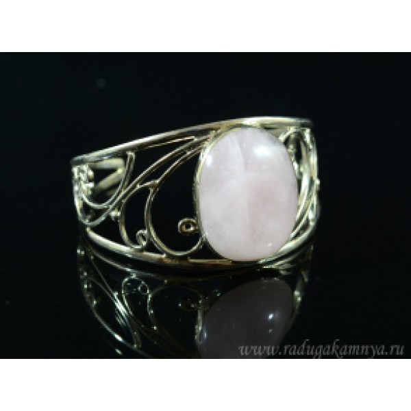 Кольцо из кварца розового, литое широкое, цвет род..