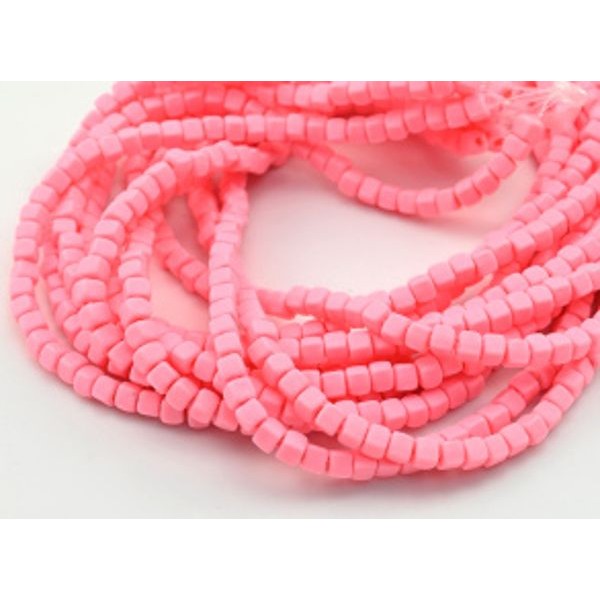 Бусины из каучука кубик 5мм, цвет розовый, 39см, 81 бусина (иск.)