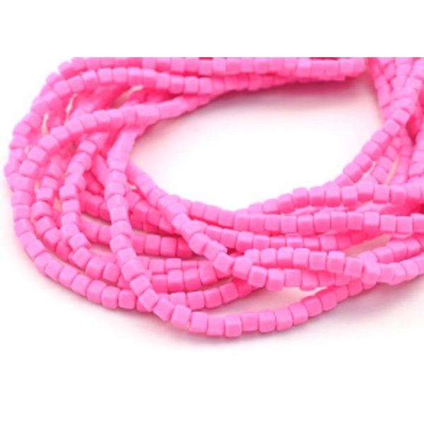 Бусины из каучука кубик 5мм, цвет розовый, 39см, 84 бусины (иск.)