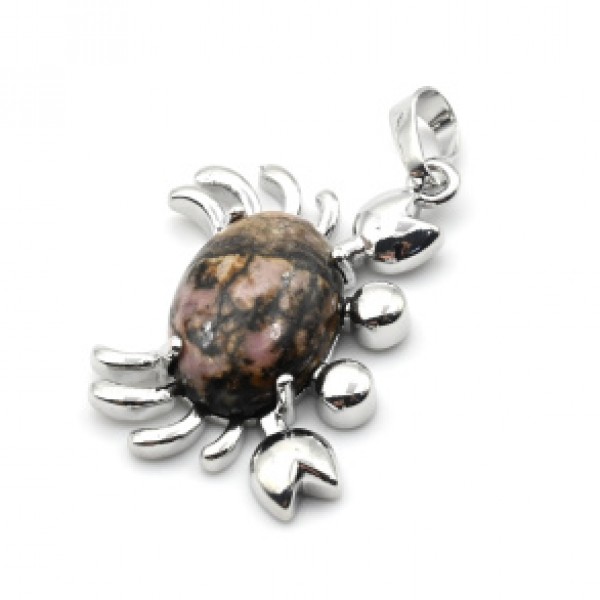 • Кулон с родонитом "Краб" 22*34мм в металле