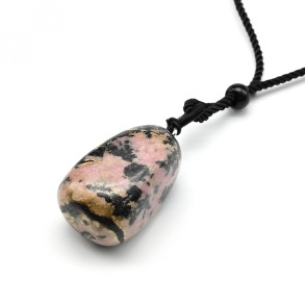 Кулон из родонита галтовка на шнурке 19*30мм, 62см