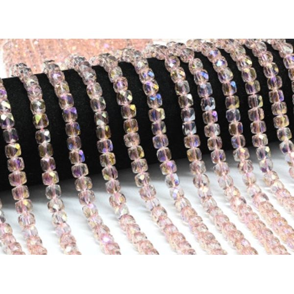 Бусины из чешского стекла кубик гр.6мм цвет розовый, 40см, 60 бусин (иск.)
