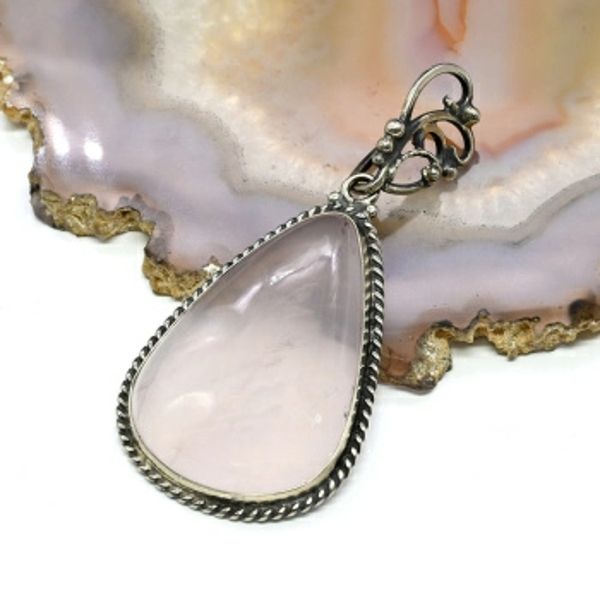 Брошь из кварца розового "вензель", основа 70х2.4мм, овал 18х13мм, подвеска кварц розовый