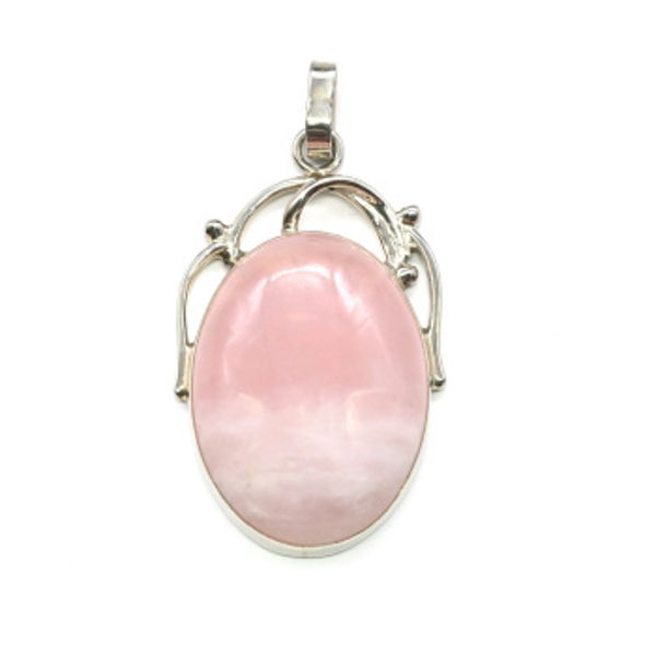 Брошь из кварца розового "вензель", основа 70х2.4мм, овал 18х13мм, подвеска кварц розовый