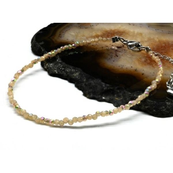Браслет из циркона шарик гр.2мм цвет персиково-розовый, 19см (иск.)