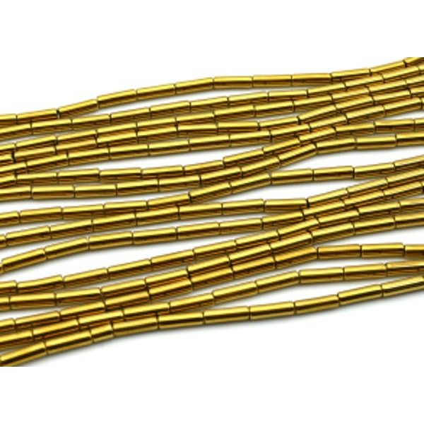 Бусины из гематита цилиндр 4*12мм цвет золотистый, 40см, 32 бусины