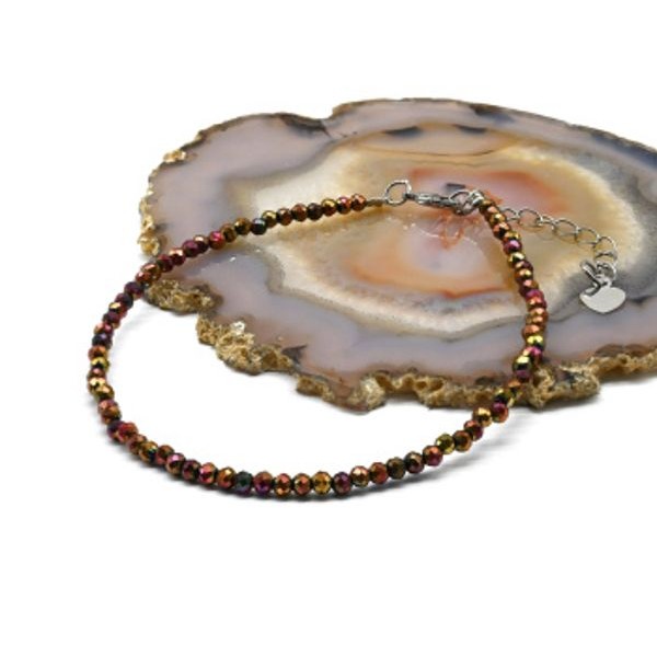 • Браслет на ногу из циркона шарик гр.3мм цвет золотисто-бордовый, 21см (иск.)