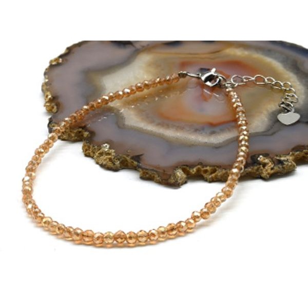 • Браслет на ногу из циркона шарик гр.3мм цвет шампань, 21см (иск.)