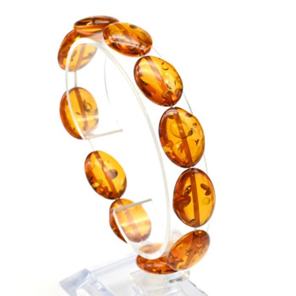 • Браслет из янтаря овал 13*18мм цвет коньячный, 18см (иск.)