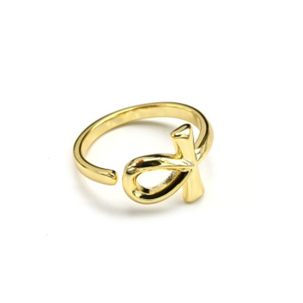 Кольцо Клевер с эмалью черной, золотистое (иск.)