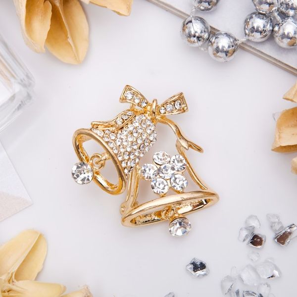 • Брошь "Колокольчики", цвет белый, цвет золотистый (стразы)